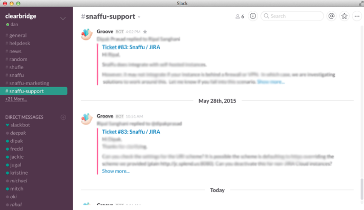 If you don’t use JIRA, Slack has an impressive list of integrations, which includes project management tools like Asana and Trello.